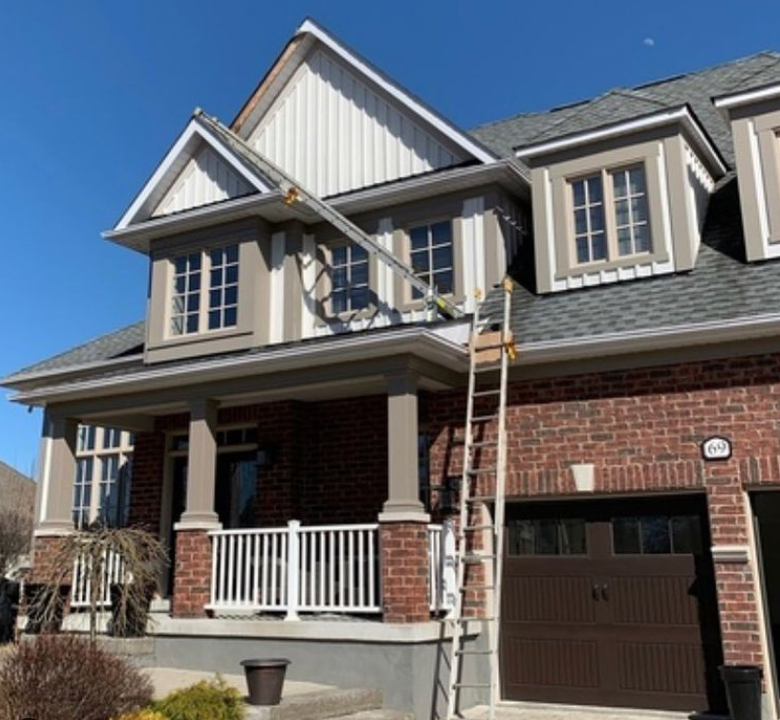 It might be difficult to get to a higher landing or roof. Ensure that the ladder is at least 3 feet above the roofline. Climbing up over the top rung is never a good idea. Rather, take a cautious step to the side onto the roof or landing. Take your time and do not rush. To secure the ladder to a gutter, use a ladder grip or a ladder stability device.